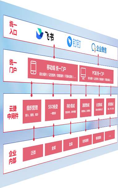 对协作平台提供支持服务,,,支持企业应用与协作平台对接,,包含组织同步、、消息集成、、待办集成等。。。支持目前主流的协作平台:钉钉、、企微和飞书。。
